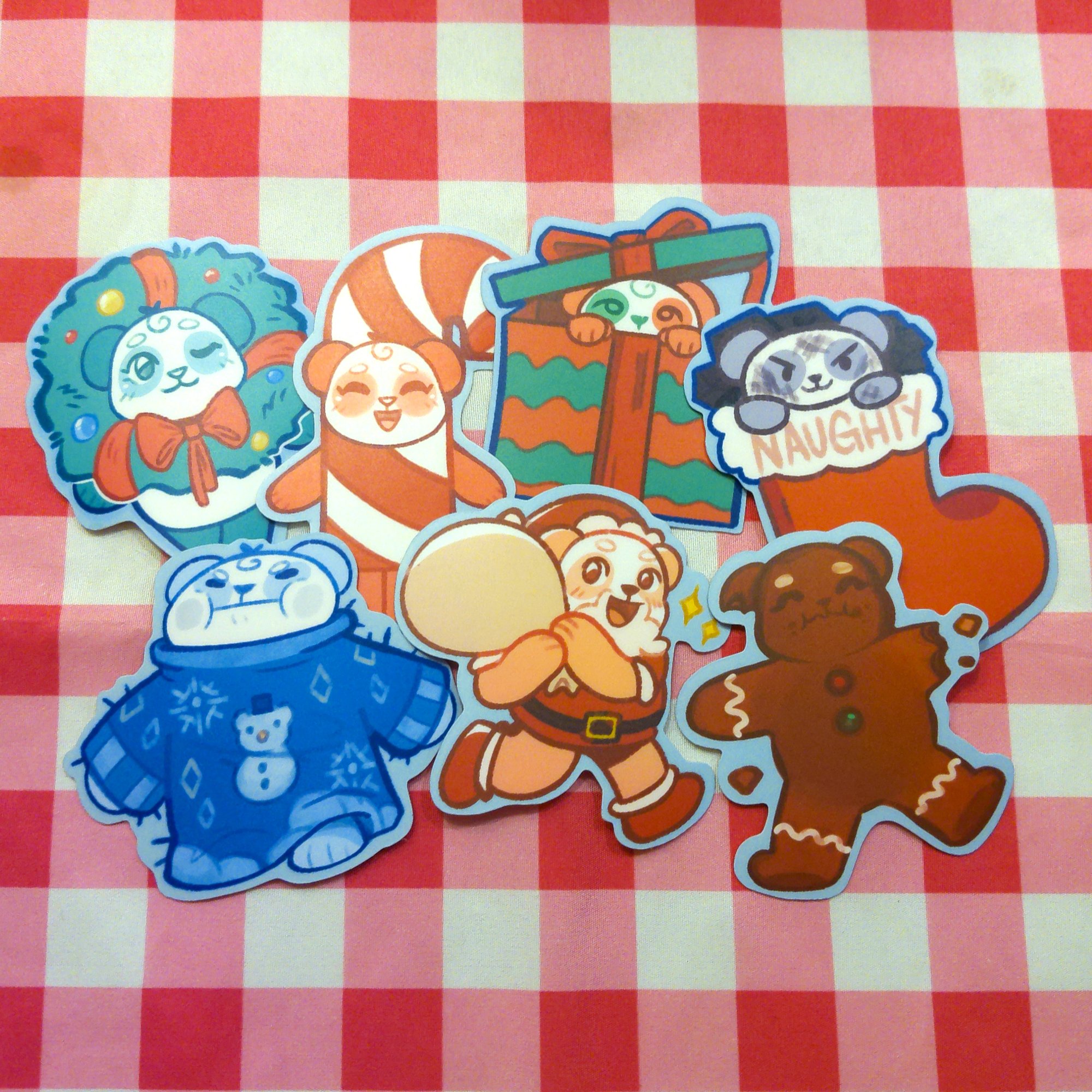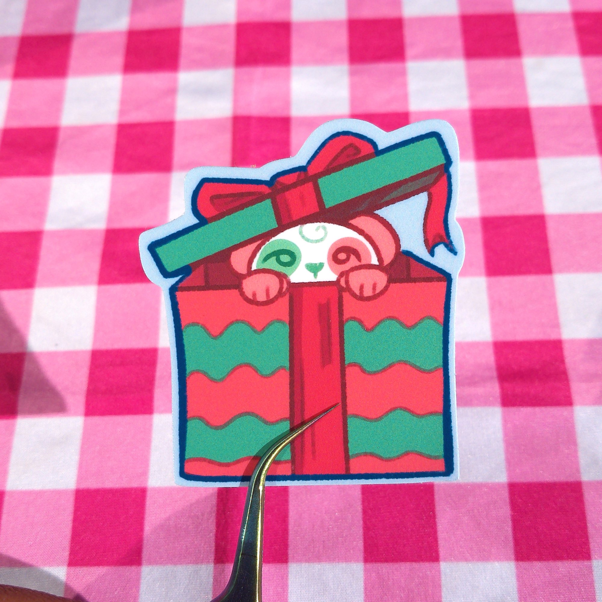 This sticker is handmade and printed in my home studio! These festive pandas are durable and perfect for your laptop, hydro flask water bottle, phone, scrapbook, journal, and more!