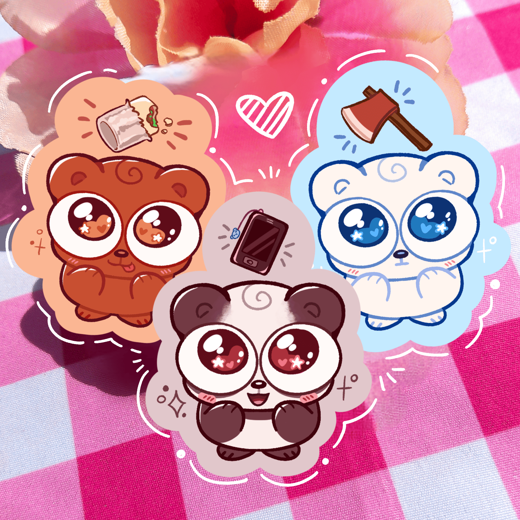 These cute chibi bears are durable and perfect for your laptop, Hydro Flask water bottle, phone, scrapbook, journal, and more!